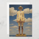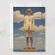 Uma representação surreal e na moda de um homem em uma roupa de praia inspirada na vintage, apresentando um blazer listrado amarelo e branco com shorts correspondentes, uma gargala listrada, óculos escuros e um chapéu largo. A cena é colocada contra um céu azul vibrante cheio de nuvens lisas, evocando uma estética nostálgica de verão. A composição artística combina elementos do surrealismo e do hiperrealismo, fazer-o como uma imagem visualmente cativante e à frente da moda.