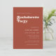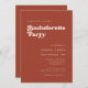 Convite festa de solteira: comemore seus últimos dias como uma mulher solteiro com seus melhores amigos e família. Receba um convite moderno para organizar uma festa nobre memorável. Um tema retro chic: adote este design tipográfico ligeiramente vintage e na moda para a sua papelaria de casamento, com um tema de cor laranja queimada, terracota e açúcar marrom. Texto, cores e fundo totalmente personalizáveis.