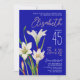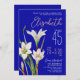 Comemore ao estilo do eterno com este elegante convite para o aniversário do jardim, com uma ilustração floral vintage de lírios brancos e verde-luxuoso em relação a um rico fundo azul real. Projetado para mulheres de todas as idades, este convite chico combina facilmente elegância feminina moderna com beleza botânica clássica. O nome do celebrante é destacado na caligrafia de pêssego na moda, enquanto a tipografia branca limpa garante que os detalhes do evento sejam claros e fáceis de ler. Ideal para festas de jardim ao ar livre, aniversários de marco, chás de tarde ou brunches sofisticados, este convite totalmente personalizável permite que você personalize todos os detalhes — do nome e da idade até a data e a localização. Uma escolha perfeita para aqueles que apreciam estética refinada, sotaques florais, e design único, inspirado na natureza.