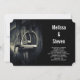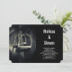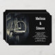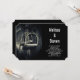 Um convite para o casamento com uma fotografia branca e preta. Uma foto de uma sela de couro inglesa focada nos estribos de prata. Perfeito para entusiastas de equitação em inglês.