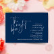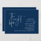 Na Noite Anterior. Design moderno romântico minimalista temático, cartão de convite para janto de ensaio de casamento (em azul marinho, tema de orientação paisagística). Planejar uma celebração do Janto de ensaio do casamento com a futura noiva e futura noiva, antes do seu grande dia? Convide os convidados com este Cartão de Convite para Janto de Ensaio de Casamento perfeito. Edite-o facilmente com seus detalhes de convite de janto de ensaio. O cartão de convite disponível em / cópias impressas e em arquivos digitais descarregáveis.