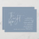 Na Noite Anterior. Design moderno romântico minimalista temático, cartão de convite para janto de ensaio de casamento (em azul empoeirado, tema de orientação paisagística). Planejar uma celebração do Janto de ensaio do casamento com a futura noiva e futura noiva, antes do seu grande dia? Convide os convidados com este Cartão de Convite para Janto de Ensaio de Casamento perfeito. Edite-o facilmente com seus detalhes de convite de janto de ensaio. O cartão de convite disponível em / cópias impressas e em arquivos digitais descarregáveis.