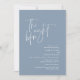 Na Noite Anterior. Design moderno romântico minimalista temático, cartão de convite para janto do ensaio de casamento (em azul empoeirado, tema de orientação para retratos). Planejar uma celebração do Janto de ensaio do casamento com a futura noiva e futura noiva, antes do seu grande dia? Convide os convidados com este Cartão de Convite para Janto de Ensaio de Casamento perfeito. Edite-o facilmente com seus detalhes de convite de janto de ensaio. O cartão de convite disponível em / cópias impressas e em arquivos digitais descarregáveis.