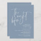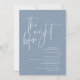 Na Noite Anterior. Design moderno romântico minimalista temático, cartão de convite para janto de ensaio de casamento (azul empoeirado, tema de orientação para retratos). Planejar uma celebração do Janto de ensaio do casamento com a futura noiva e futura noiva, antes do seu grande dia? Convide os convidados com este Cartão de Convite para Janto de Ensaio de Casamento perfeito. Edite-o facilmente com seus detalhes de convite de janto de ensaio. O cartão de convite disponível em / cópias impressas e em arquivos digitais descarregáveis.