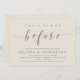 Anuncie a sua alegria para sempre em estilo com o nosso moderno tema design (A Noite Antes) cartão de convite para comemorações de casamento. É ideal para casais que decidiram celebrar a noite antes do seu grande dia. Com seu design sofisticado, mas lúdico, este convite certamente define o tom de um evento inesquecível. O cartão de convite apresenta o moderno design de script clássico, adicionando um toque de elegância do eterno à sua celebração. Projetado por TeeshaDerrick