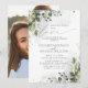 Crie o convite perfeito para um casamento casual, ou celebração de recepção após a fuga dos noivos, com este design moderno e elegante de folhagem botânica de eucalipto, apresentando tipografia de letra manuscrita, com todo o texto em verde musgo. O verso do convite apresenta sua foto favorita. Muito obrigada por apoiar nosso pequeno negócio, apreciamos muito!
