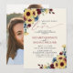 Crie o convite perfeito para um casamento casual, ou celebração de recepção após a fuga, com este moderno e trendy desenho de girassóis em aquarela floral em azul marinho e burgundy, apresentando tipografia de letra manuscrita. O verso do convite apresenta sua foto favorita. Entre em contato com o designer para produtos correspondentes. Muito obrigada por apoiar nosso pequeno negócio, realmente apreciamos!