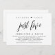 Anuncie seu para sempre feliz com estilo com nosso cartão de convite de brunch pós-casamento (Nada sofisticado, apenas amor) com design de letra moderna para casais que fugiram (Tema preto e branco). Nosso cartão de convite de celebração de brunch "Feliz para Sempre" é ideal para casais que decidiram se casar em segredo e querem realizar uma festa para celebrar sua união. Com um design sofisticado e divertido, este convite certamente estabelecerá o tom para um evento inesquecível. O cartão de convite apresenta um design minimalista, adicionando um toque de elegância atemporal à sua celebração. Projetado por TeeshaDerrick