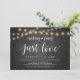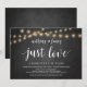 Nada de Fantasia, Apenas Amor, Anúncio de Casamento às Escuras / Convite de festa, em Luzes de Corda Rústicas Modernas, tema de quadro-negro. Isto é perfeito para o seu casamento e festa de celebração pós-casamento. Adicione seus detalhes na fonte / letra correspondente.