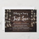 Lindo Nada de Fantasia, Apenas Amor, Anúncio de Casamento às Escuras / Convite de casamento, em Madeira Rústica de Fazenda, design de Luzes de Natal. Isto é perfeito para a recepção do seu casamento e festa de celebração pós-casamento. Adicione seus detalhes na fonte / letra correspondente.