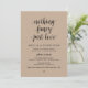 Linda Caligrafia Moderna Casual, em fonte de letra preta, em papel de fundo kraft marrom, Anúncio de Casamento Furtivo, cartão de convite (Nada de fantasia, apenas amor). Isso é perfeito para o seu casamento e festa de celebração pós-casamento. Adicione seus detalhes na fonte / letra correspondente.