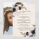 Crie o convite perfeito para um casamento casual, ou celebração de recepção após a fuga, com este moderno e trendy floral aquarela rosa e azul naval, apresentando tipografia de letra manuscrita. O verso do convite apresenta sua foto favorita. Entre em contato com o designer para produtos correspondentes. Muito obrigada por apoiar nosso pequeno negócio, realmente apreciamos!
