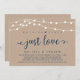 Lindas Luzes de Corda de Fazenda Rústica Moderna, fonte de letra azul-marinho em Fundo de Papel Kraft, Anúncio de Casamento Furtivo, cartão de convite (nada de luxo, apenas amor). Isso é perfeito para o seu casamento e festa de celebração pós-casamento. Adicione seus detalhes na fonte / letra correspondente.