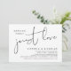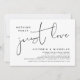 Este é o convite de casamento com design minimalista de letra cursiva preta (Nada de luxo, apenas amor).