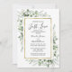 Um belo convite para o casamento do eucalipto em verde-ouro. Fácil de personalizar com seus detalhes. Excelente para casamento verde ou de jardim.