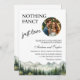 Um convite elegante para o casamento com montanhas de aquarelas e pinheiros que você pode personalizar com seus detalhes.