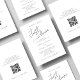 Este convite de casamento moderno e minimalista tem uma fachada elegante. Ele toca com a simplicidade de um design de tipografia preto e branco, acrescentando apenas uma dica de cor de pêssego. No verso do convite você pode adicionar as informações do seu site de casamento, bem como um código QR para seus convidados digitalizarem. É a escolha perfeita para casais que apreciam elegância limpa e moderna. Para qualquer necessidade especial de design, fique à vontade para entrar em contato diretamente com o designer, enviando um e-mail para choosehappystudio@yahoo.com