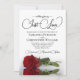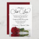 Este convite romântico de casamento apresenta uma rosa vermelha há muito enraizada solteiro que se encontra do seu lado, espelhada numa piscina de água. O título está escrito em letras elegantes e diz: Nada de Rico, apenas amor. A parte de trás é uma cor vermelha marcada com um buquê de rosas e espaço para detalhes de casamento, incluindo um código QR onde seus convidados podem obter mais informações e/ou RSVP on-line. Este convite é uma combinação maravilhosa de moderno e eterno - uma forma perfeita de convidar seus amigos e famílias a compartilhar sua alegria no seu dia especial!
