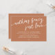 Anuncie a sua alegria para sempre em estilo (Nada de Rico, Apenas Amor) com o nosso moderno tema marrom-de-cobre-rústico, cartão de convite para celebração de elopementos de design de casamento. O nosso cartão de convite à celebração de festas "Feliz Nunca Depois" é ideal para os casais que decidiram fugir e querem acolher um partido para celebrar o seu sindicato. Com seu design sofisticado, mas lúdico, este convite certamente define o tom de um evento inesquecível. O cartão de convite apresenta um esquema de design elegante rústico minimalista, acrescentando um toque de elegância eterno à sua celebração. Projetado por TeeshaDerrick