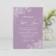 Este belo convite para o casamento é simples, moderno, elegante e divertido. Apresenta uma bela luz roxa ou lavanda e design branca com caracóis e espirais nos cantos, e uma escrita moderna que escreve: Nada de Rico, Apenas Amor. Romântico, clássico e glamour, ainda que mesquinho e alegre, este convite de casamento é perfeito para uma cerimônia casual ou formal.