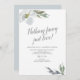 Convite elegante para jantar de ensaio botânico em aquarela emoldura os detalhes da celebração do jantar e ensaio da cerimônia de casamento com uma borda de folhas e flores em aquarela em tons pálidos e frios de cinza e verde. As palavras Nothing Fancy Just Love estão em uma tipografia de caligrafia. Os detalhes do seu evento estão em uma tipografia elegante tradicional sans serif e script. Personalize seu modelo com detalhes da festa. Perfeito para casamentos de primavera, verão, outono, tema rústico ou de jardim, festas de noivado ou anúncio de casamento. Para ver mais designs como este, visite VG Invites em www.zazzle.com/vginvites