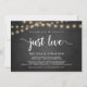 Lindo Nada sofisticado, apenas amor, Anúncio de casamento / cartão de convite, em quadro-negro de fazenda rústica, design de luzes de corda. Isso é perfeito para o seu casamento e festa de celebração pós-casamento. Adicione seus detalhes na fonte / letra correspondente.