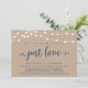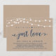 Lindas Luzes de Corda de Fazenda Rústica Moderna, fonte de letra cursiva azul marinho em fundo de papel Kraft, Anúncio de Elopement de casamento, cartão de convite (nada sofisticado, apenas amor). Isto é perfeito para a recepção do seu casamento e festa de celebração pós-casamento. Adicione seus detalhes na fonte / letra correspondente.