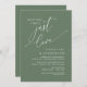 Anuncie e compartilhe seu felizes para sempre com estilo com o nosso design de tema verde de sabedoria florestal moderno (Nothing Fancy Just Love) cartão de convite de casamento para cerimônia íntima. É ideal para casais que decidiram celebrar o seu melhor dia. Com um design sofisticado e ainda assim divertido, este convite certamente estabelecerá o tom para um evento inesquecível. O cartão de convite apresenta um tema de design de letra moderna e minimalista, adicionando um toque de elegância atemporal à sua celebração. Criado por TeeshaDerrick