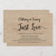 Lindo Nada sofisticado, apenas amor, Anúncio de casamento / cartão de convite de fuga romântica, em design de madeira de fazenda rústica. Isso é perfeito para o seu casamento e festa de celebração pós-casamento. Adicione seus detalhes na fonte / letra correspondente.