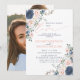 Crie o convite perfeito para um casamento casual, ou celebração de recepção após uma fuga romântica, com este moderno e trendy floral em aquarela azul empoeirado e rosa beije, apresentando tipografia de letra manuscrita. O design apresenta sua foto favorita no verso do cartão. Entre em contato com o designer para produtos correspondentes. Muito obrigada por apoiar nosso pequeno negócio, realmente apreciamos!