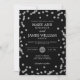 Os produtos correspondentes estão disponíveis! Design de convite para casamento elegante com Silver Glitter Confetti em Preto, nomes personalizados e texto de data. Totalmente personalizável! Fácil de usar e fácil de personalizar.