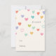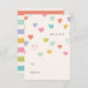 Um doce cartão de Dia de os namorados em sala de aula com vários corações coloridos.