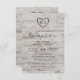 Namorados entalhados em madeira de bétula rústica com desenho de casca de árvore de bétula cinza envelhecido e branco esmaecido, e uma aparência desgastada com pátina envelhecida. Este design de madeira reaproveitada apresenta as iniciais do casal entalhadas em forma de coração dentro da árvore. Além disso, tipografia country chic desgastada, juntamente com uma fonte de escrita à mão elegante e vintage. O design é perfeito para um casamento de outono, inverno, primavera ou verão e pode ser usado para qualquer estação - Convite de Recepção de Casamento Personalizado!
