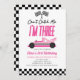 Este é um Convite de festas de aniversário de 3 anos de carro de corrida rosa!