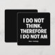 Adicione um pouco de humor ao seu estilo com isto Não Penso, portanto, que não sou, design de citação gráfica engraçada. Presente perfeito para homens, mulheres, crianças e amantes felinos que apreciam gatos, guaxinins, gambás, memes de inspiração japonesa, piadas espaciais e humor filosófico espirituoso. Excelente para vibrações, aniversários ou risadas do dia a dia!