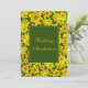 O texto está em um estilo de caligrafia, de cor amarelo-dourado e é facilmente personalizável para os nomes, datas e locais de sua escolha.