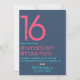 Aniversário da tipografia azul, amarela e rosa-rosa-vírgula, convidado personalizável para suas especificidades.