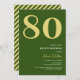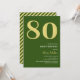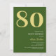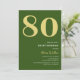 Convites de festas de aniversários elegantes de ouro e 80 verde com o número '80' em uma fonte grande e ousada, e um modelo de convite moderno que é fácil de personalizar.