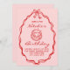 Se você procura um convite único e elegante, facilmente editado, para aniversário de 30 anos, este é perfeito para você. Como vocês podem ver, ele apresenta um roteiro escrito de mão vermelha com nome caprichoso e redação de aniversário em fundo retrocor-de-rosa. Com a mão vermelha colorida desenhada, um arco de vidro martini dentro no 30. E um quadro ondulado de fita de arco desenhado pela mão vermelha. E RSVP no verso e foto personalizável. Com informações inteiras que podem ser personalizadas facilmente clicando no botão personalizar. Este convite de aniversário de tendências Quirky e exclusivo também é um convite eletrônico digital se você quiser enviá-lo por e-mail ou texto. Então pegue e faça seus convites verdadeiramente engajados.