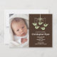 O anúncio doce do nascimento do bebé dos elefantes caracteriza um móbil verde adorável do bebê dos elefantes em um fundo marrom na moda.  Personalize com imagem do seu bebê recém-nascido e a informação e você do nascimento são todos ajustam-se para ir. Artigos de harmonização disponíveis em nossa loja. estúdio do ©Cocoa