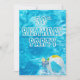 Convite para a festa de aniversário de natação 50ª piscina com cocktail e esfera de praia em água turquesa.