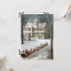 Ilustração vintage da era vitoriana com design de Natal apresentando um Papai Noel do velho mundo em frente a uma casa com seu trenó e renas na véspera de Natal.