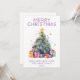 Árvore de Natal com presentes para o cartão de Natal em roxo para um Cartões de natal festivo para familiares e amigos.