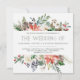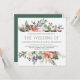 Esses convites de casamento elegantes apresentam flores de aquarela rústicas com pinecones, ramos, bagas, folhas e rosas brancas.