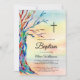 Convide a família e os amigos para o batismo do seu bebê com este convite colorido. Apresenta uma árvore genealógica nas cores do arco-íris e uma cruz num fundo de aquarela. Facilmente personalizável com seus detalhes. Este design único é um impressão de um mosaico da Árvore Familiar que foi feito de pequenos pedaços de vidro de cor clara. Porque nós criamos nosso próprio trabalho de arte você não encontrará essa imagem exata de outros designers. Mosaico original © Michele Davies.