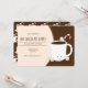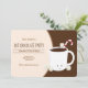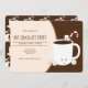 Um convite de férias horizontal para uma festa de Chocolate Quente de Natal. Este convite apresenta uma caneca sorridente de cacau quente com uma cana doce e vários marshmallows alegres em fundo castanho e creme. Todas as palavras podem ser personalizadas.