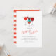 Esta divertida convite de festas de Natal festiva apresenta bebidas de férias e seu texto personalizado. A parte traseira apresenta riscas vermelhas e brilho dourado espalhado. O texto pode ser facilmente personalizado clicando em "Personalizar".