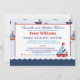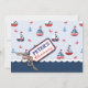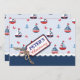 Cartão de convite para batismo temático náutico com veleiros, caranguejos e âncoras com arco e etiqueta 3D.