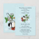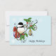 Um grão bonito sentado num galho de árvore no inverno, com flocos de neve caindo por toda parte. Os enfeites de natal estão pendurados no galho da árvore em que está sentada a galinha.