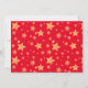 Cartão de convite de Natal único, enquadrado em fundo vermelho, com padrão de estrelas de Natal ouro. Estilo personalizado elegante para a temporada de férias. Edite o texto com suas informações pessoais!